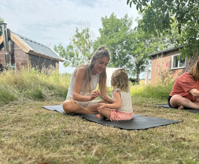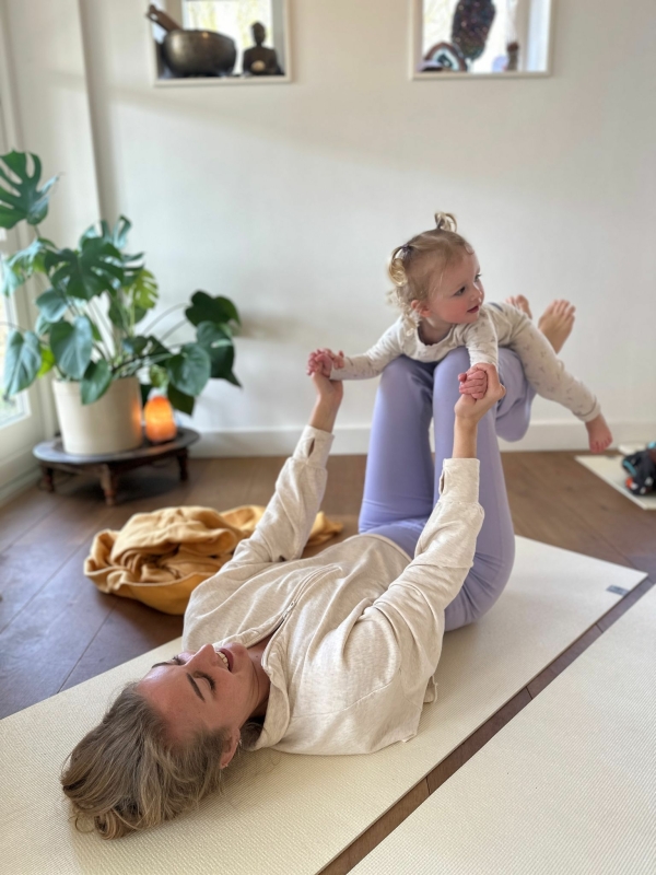 Een bijzonder onderdeel van haar werk is de ouder- en kindyoga. Tijdens deze lessen komen ouders en kinderen samen om te bewegen, te ademen, te lachen en te ontspannen. Door samen yoga te doen, ontstaat er een diepe vorm van verbinding. Niet via woorden, maar via aanraking, ademhaling en samenzijn.
