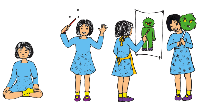 Bron illustraties: werkstukken van cursisten uit de kindercoach opleiding met Marion van der Laarse.